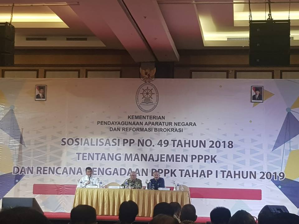Salam semangat buat rekan-rekan semuanya,Kepala Kanreg III BKN Imas Sukmarian bersama seluruh Kakanreg BKN, Gubernur, Bupati dan Walikota beserta Sekda dan Kepala BKD/BKPP/BKPSDM/BKPSDA se -Indonesia mengikuti Acara Rapat Sosialisasi PP No. 49 Tahun 2018 ihwal Manajemen PPPK dan Rencana Pengadaan PPPK Tahap I Tahun 2019.
