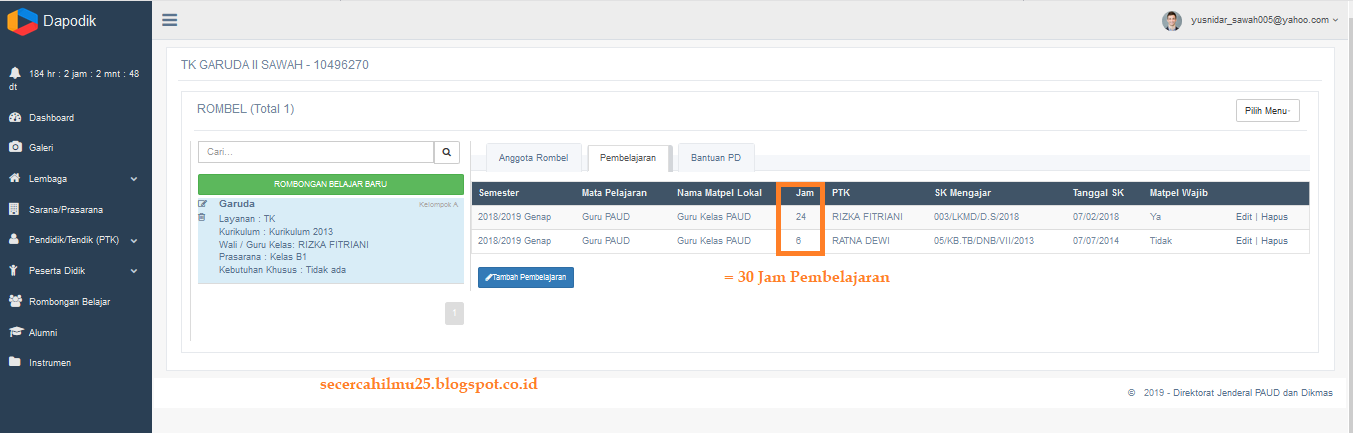 Update Pembelajaran Atau Jjm Di Dapodik Paud-Dikmas Online Semester Genap 2018/2019